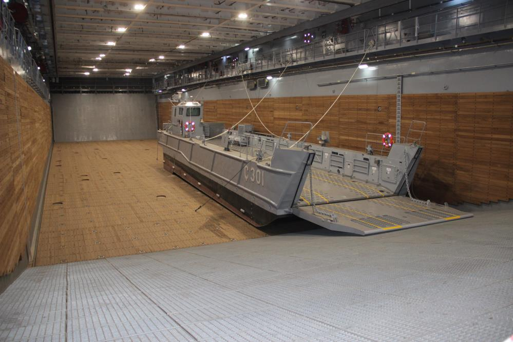Askeri gemi, ağır ve hafif araç güvertelerinde 13 tank, 27 zırhlı amfibi hücum aracı (ZAHA), 6 zırhlı personel taşıyıcı (ZPT), 15 römork ve 33 muhtelif araç taşıyabilme özelliğine sahip.