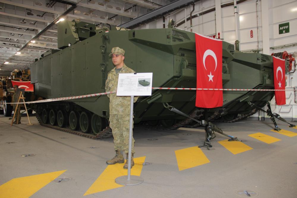 Basın turunda tanklar, zırhlı araçlar, zırhlı personel taşıyıcı gibi amfibi araçların yer aldığı ağır araç güvertesi, dört adet LCM mekanize çıkarma aracın bulunduğu havuz güvertesi ve aynı anda 6 helikopterin veya dikey iniş kalkış özelliğine sahip hava araçlarının konuşlanabileceği uçuş güvertesi ile zırhlı amfibi hücum aracı ve Altay tankı görüntülendi.