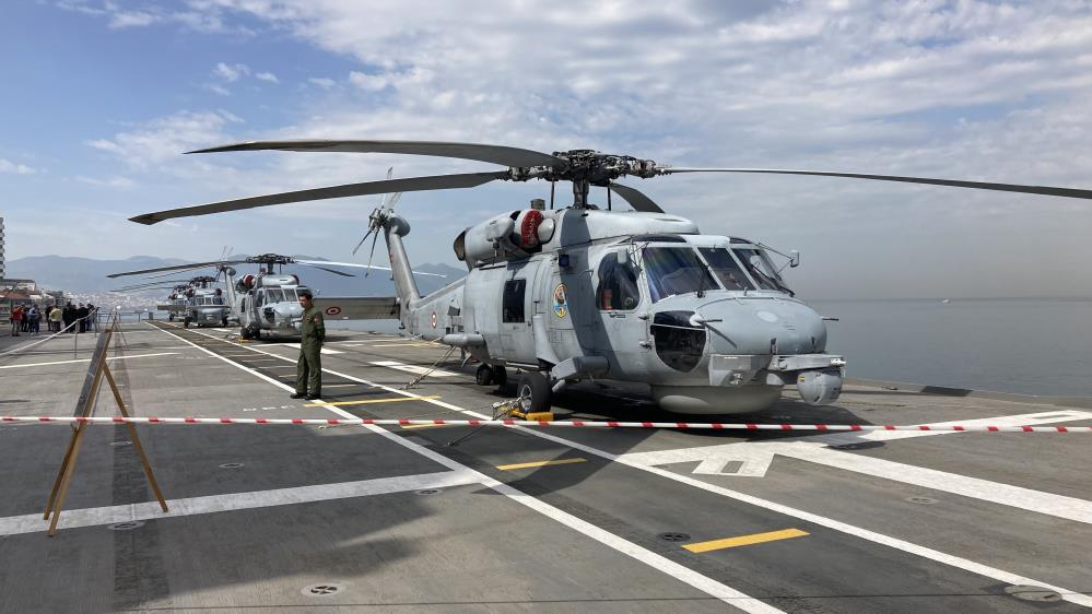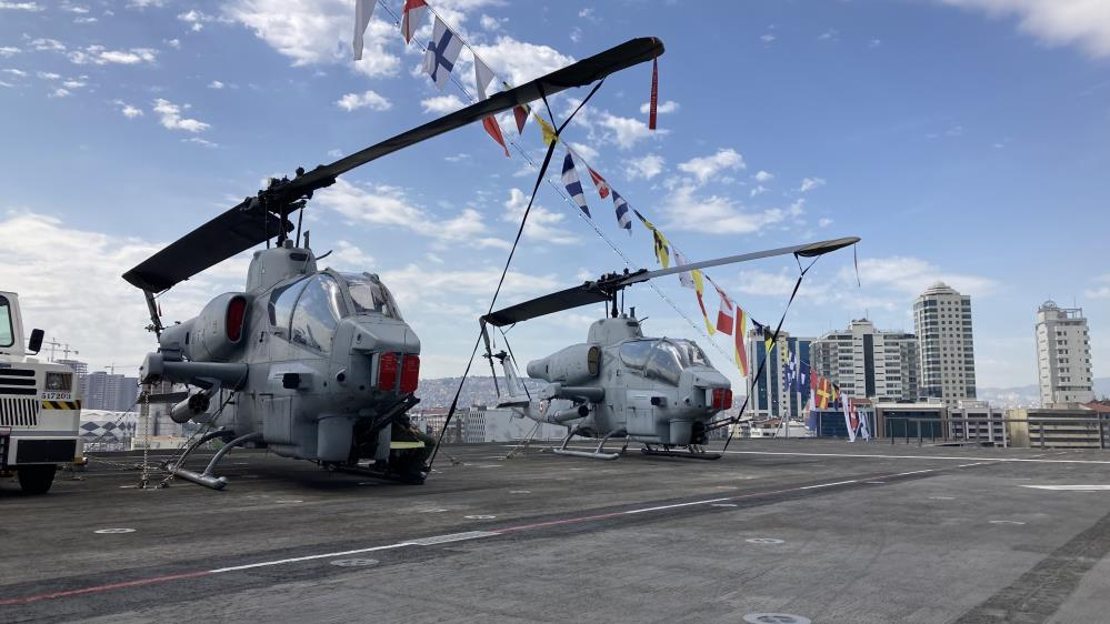 Uçuş güvertesinde, Bayraktar TB3 ve Bayraktar Kızıl Elma ilgi çekti. TCG Anadolu, bugün saat 12.00-18.00 arası ziyaretçilere açık olacak.