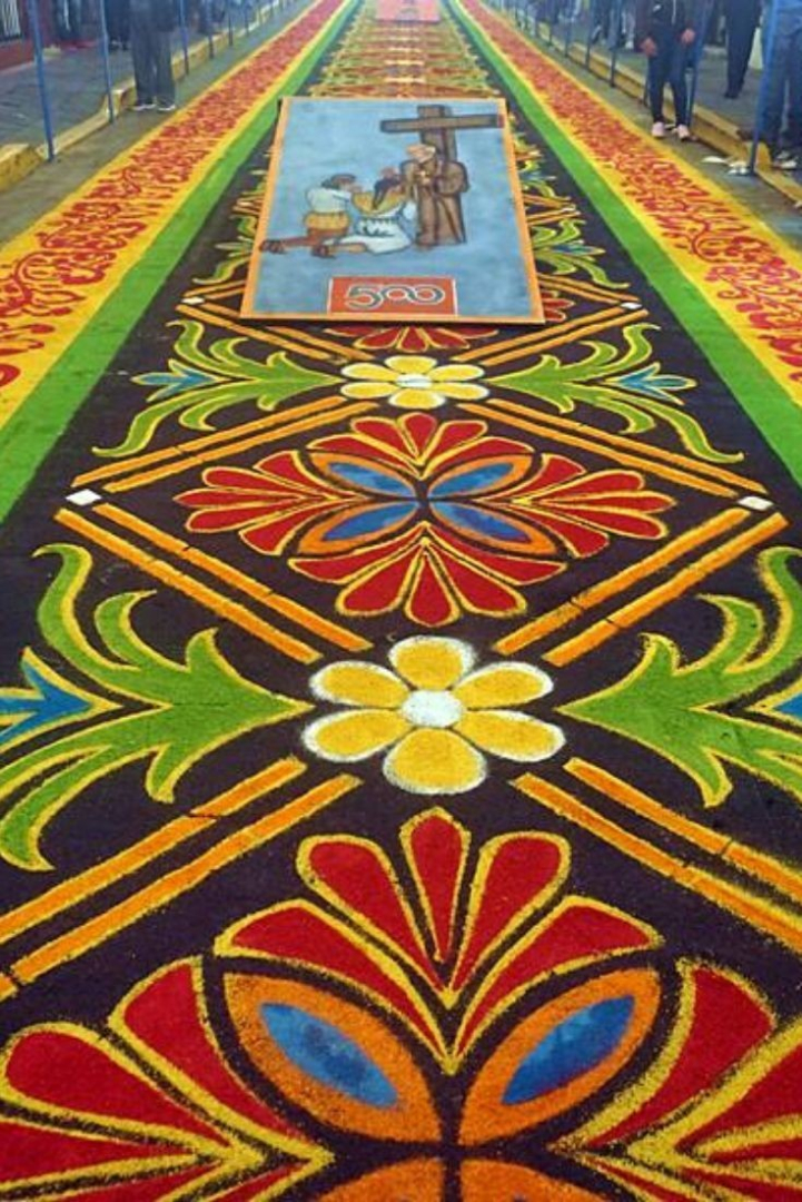 Meksika’da düzenlenen geleneksel şenlikte renkli talaş ve çiçeklerden yapılan 3 bin 932 metrelik halı Guinness Rekorlar Kitabı'na girdi.