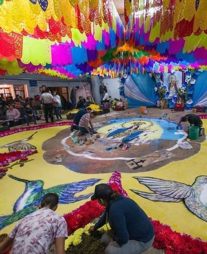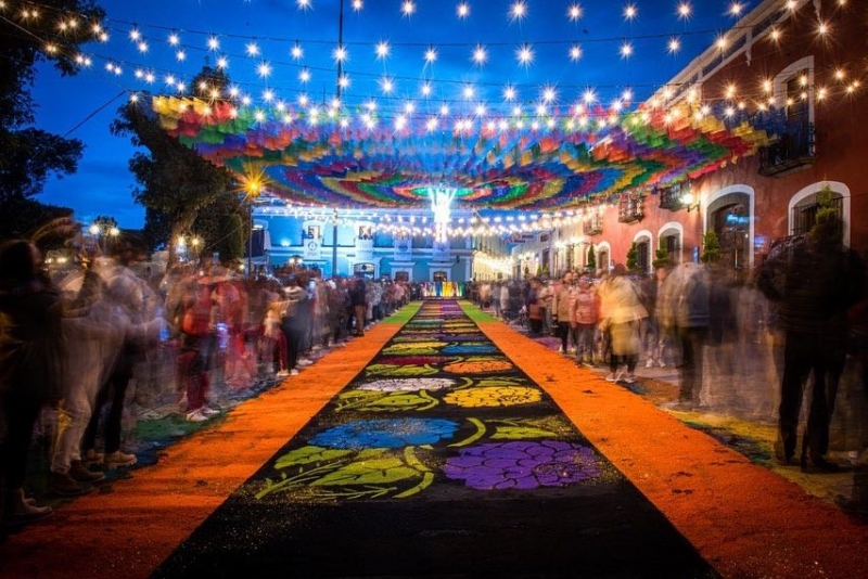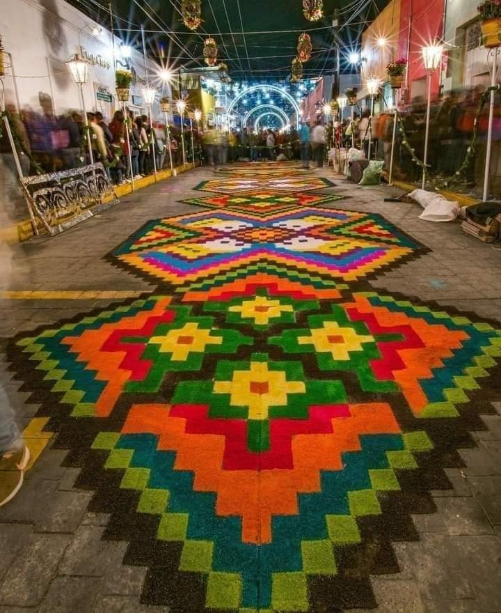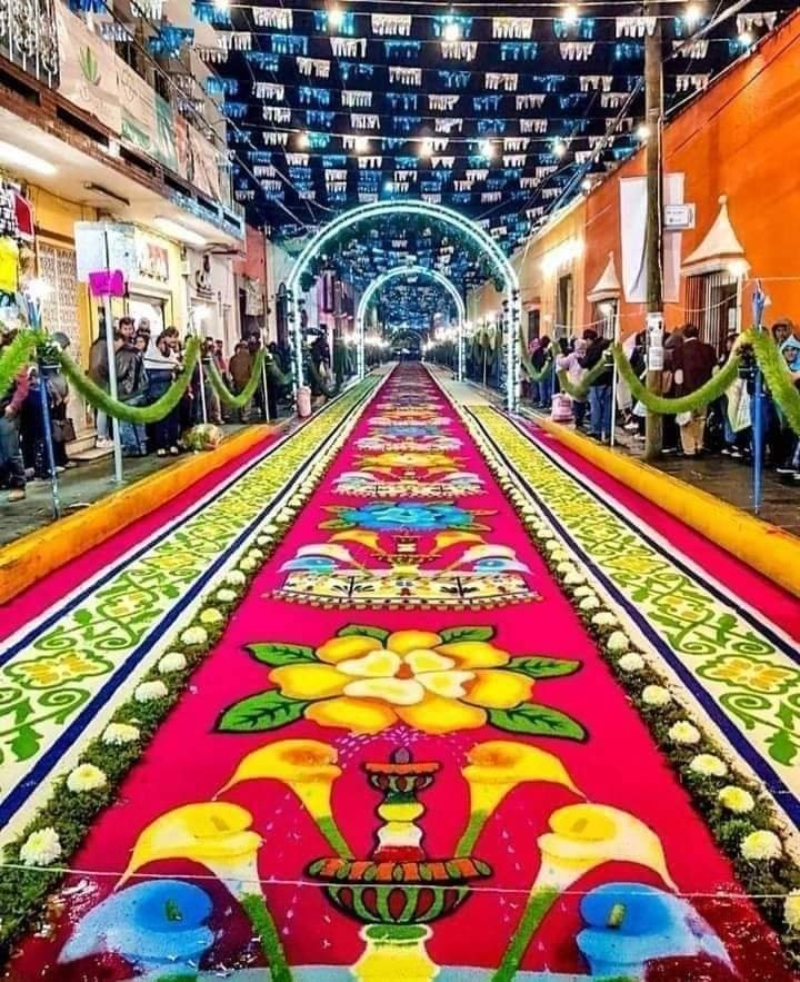 Huamantla şehrinde Cachita azizesi onuruna her yıl 14-15 Ağustos tarihlerinde düzenlenen şenliklerde şehir sokaklarını renkli halılarla süsleme geleneği 70 yıldır devam ediyor.