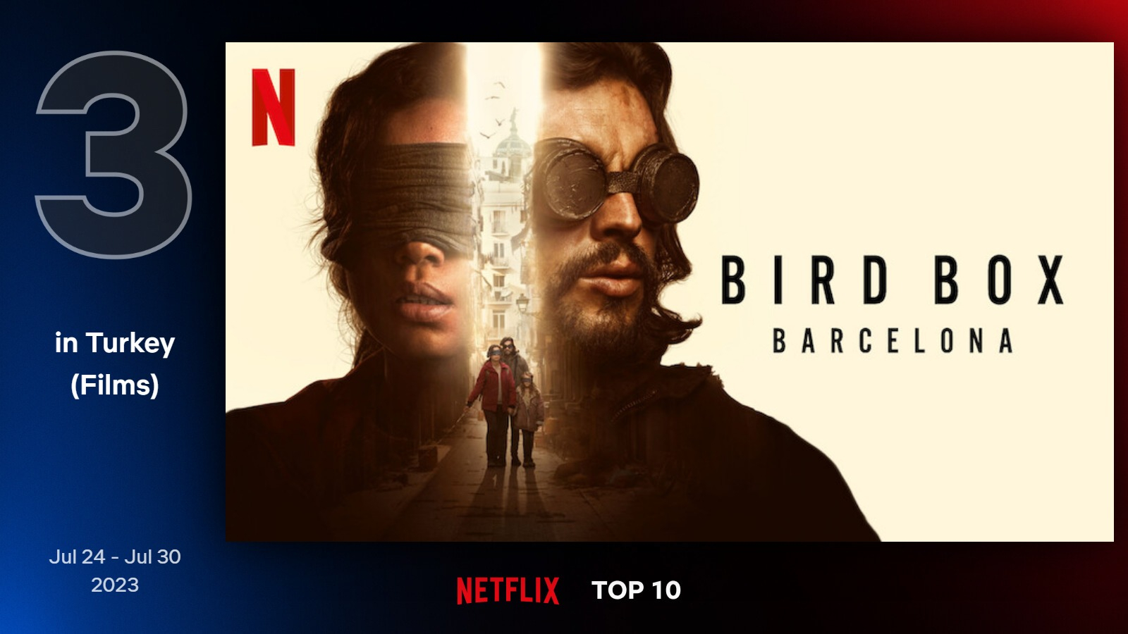 3. BIRD BOX BARCELONA İlk filmiyle izlenme rekorları kıran Bird Box, devam filmiyle Barcelona’ya taşınıyor. Film, listede 2. sıradan 3. sıraya geriliyor.