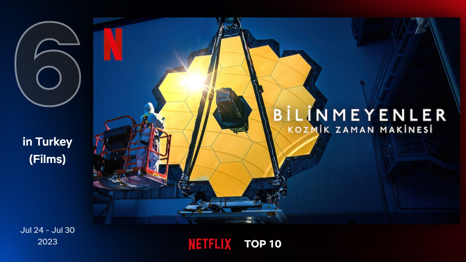 6. BİLİNMEYENLER: KOZMİK ZAMAN MAKİNESİ Listeye 6. sıradan giriş yapan belgesel film, uzak galaksilere ait fotoğraflarla hayal gücünü harekete geçiren James Webb Teleskobu’nun icadından fırlatılmasına kadar süren yolculuğunu konu alıyor.