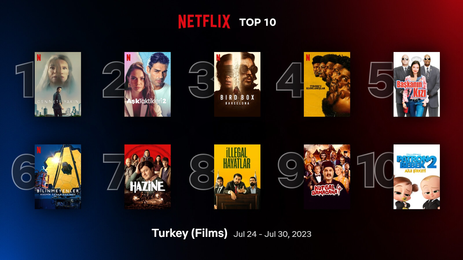 Türkiye’de geçtiğimiz hafta Netflix Top 10’da yer alan filmlerin sıralaması şu şekilde;