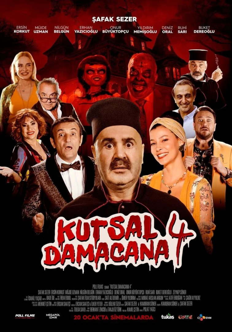 KUTSAL DAMACANA 4 Efsane komedi serisinin yeni filmi olan Kutsal Damacana 4, Fikret'in yurda geri dönüş hikâyesini anlatıyor. Yanlışlıkla girdiği papazlık yolunda Vatikan’a kadar yükselen Fikret, ülkesine döndüğünde cin çıkarma işine devam ediyor. Birçok aileye yardım edip çocuklarını kurtarırken de eski düşmanıyla tekrar karşılaşıyor.