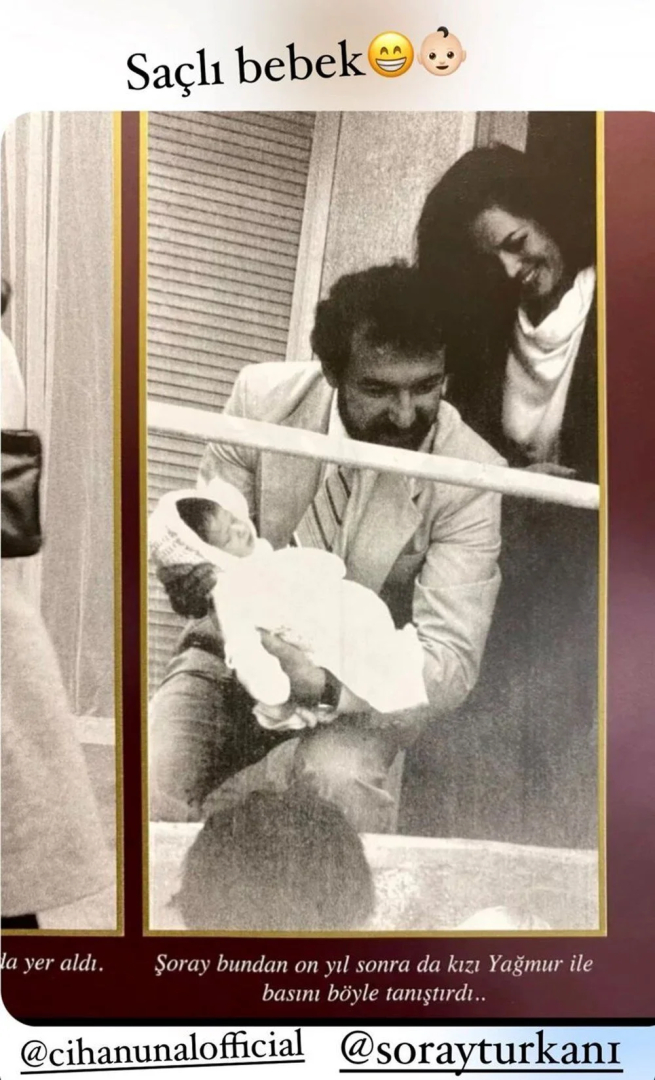 Türkan Şoray-Cihan Ünal çiftinin kızları Yağmur Ünal, anne ve babasının kendisini basınla tanıştırdığı kareyi takipçileriyle paylaştı.
