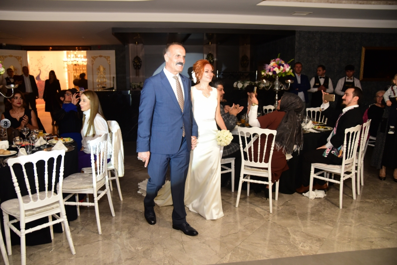 Çift, salona konukların alkışları arasında giriş yaptı.