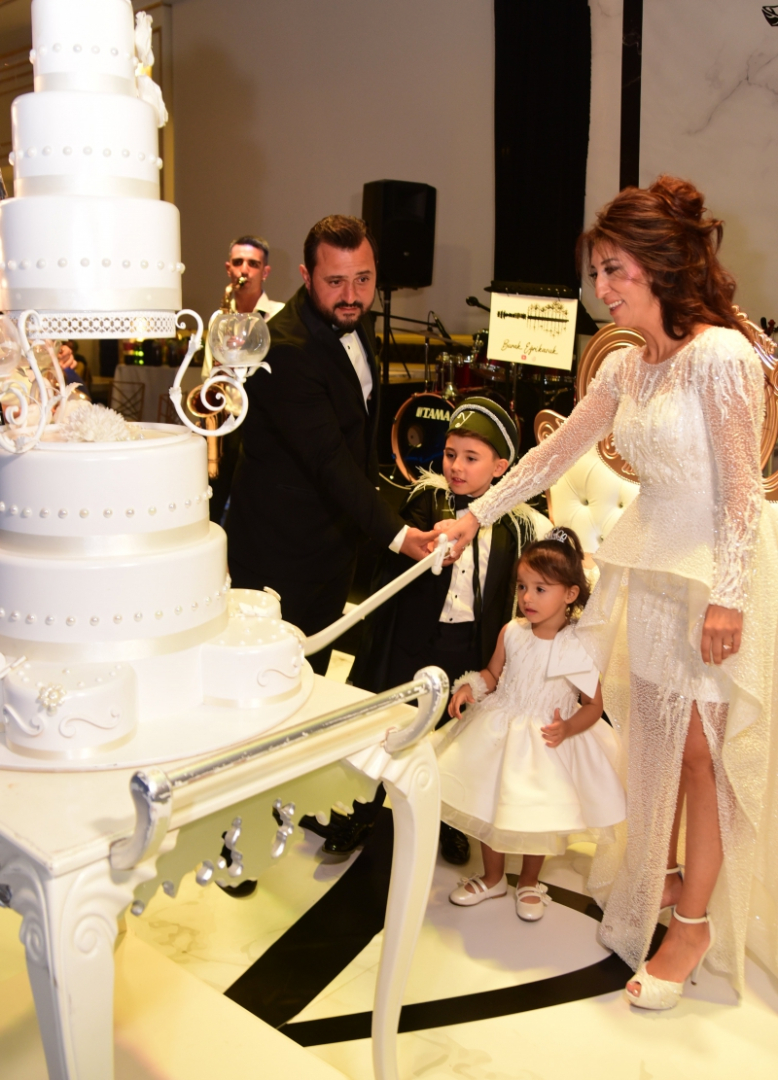 Geceye özel olarak hazırlanan pastayı kestiler.