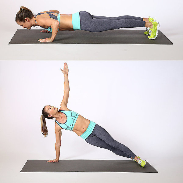Sağ eliniz ile dengenizi sağladıktan sonra göğsünüzden yavaşça dönerek yana doğru açılın ve yan plank pozisyonuna geçin. Dengede olduğunuzdan emin olduktan sonra sol kolunuzu düz bir şekilde havaya kaldırın ve birkaç saniye bu şekilde kalın. Denge sağlayabilirseniz sol bacağınızı kıvırarak sağ bacağınızın üzerine koyabilirsiniz. Ardından yavaşça başlangıç pozunuza dönerek aynı hareketi diğer tarafınız için tekrarlayın.