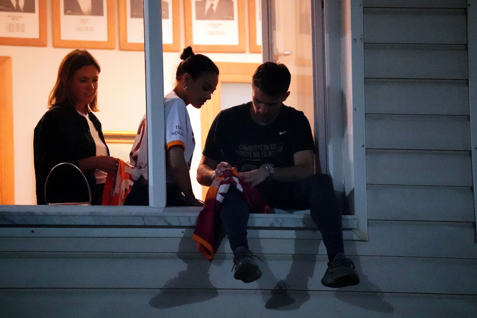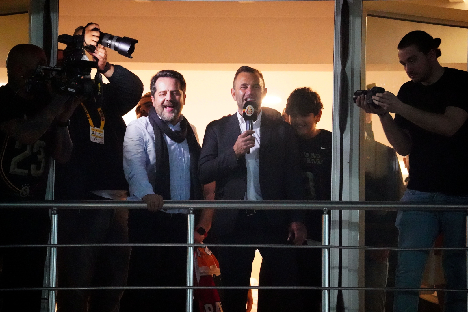 Sarı-kırmızılı taraftarlar, Teknik Direktör Okan Buruk`a da ayrı sevgi gösterisinde bulundu.