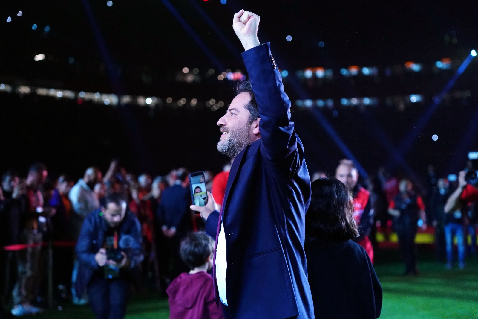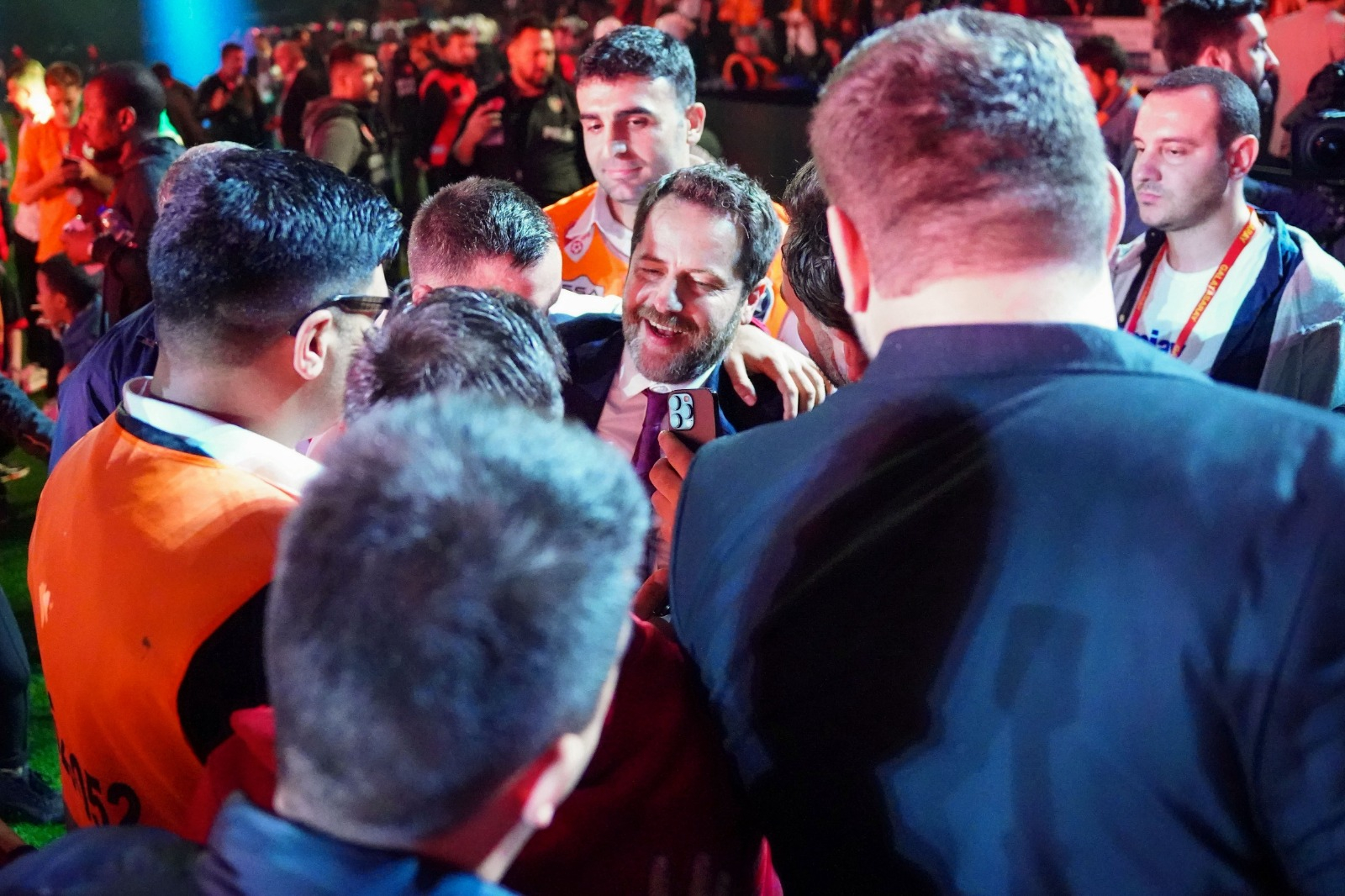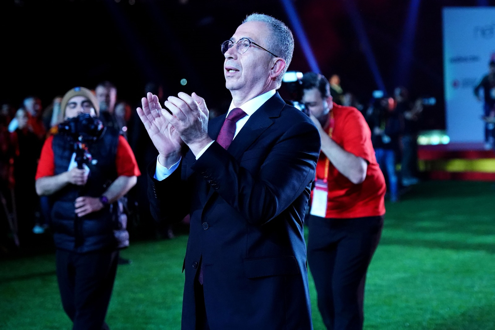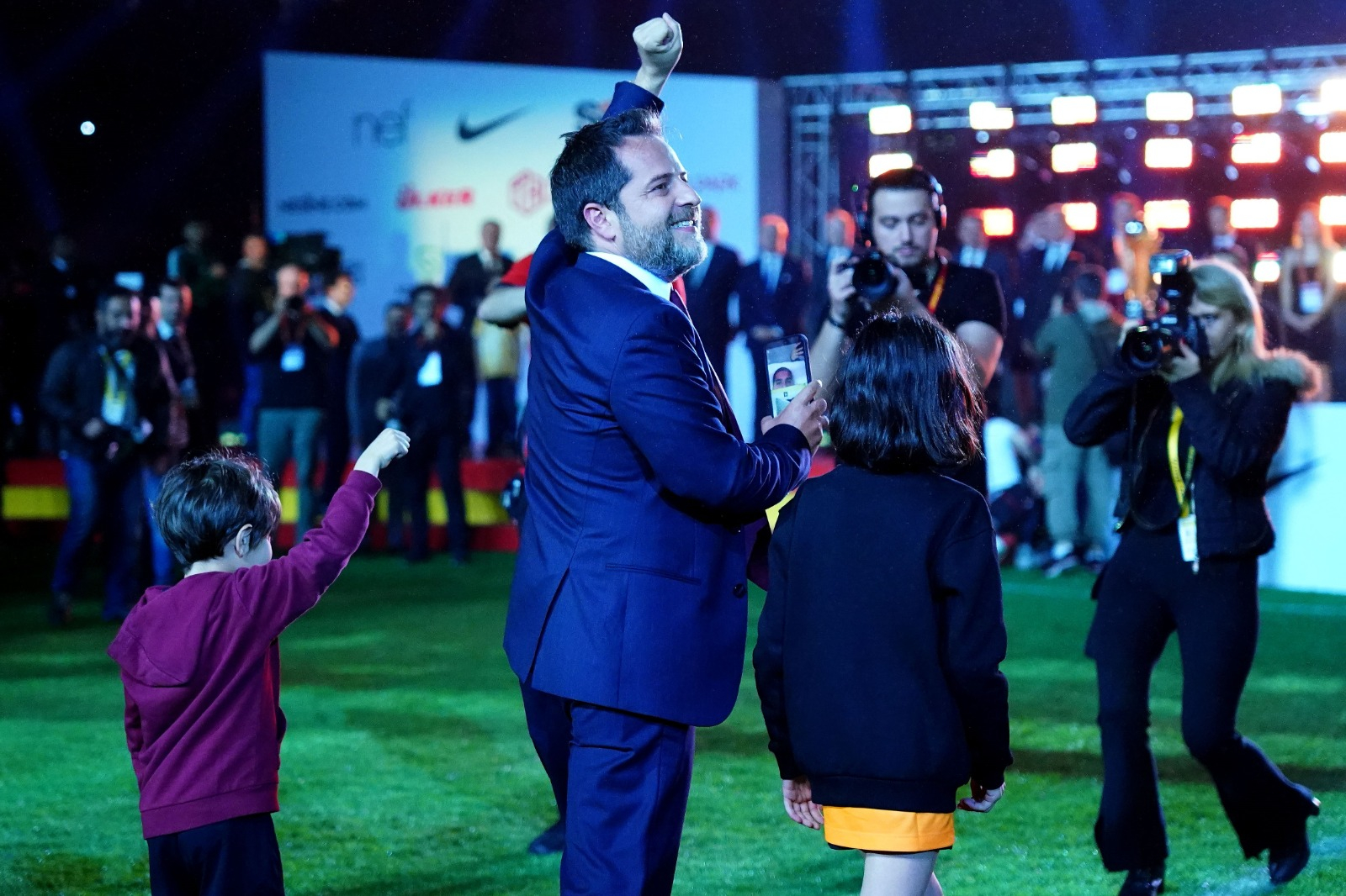Galatasaray Başkanı Dursun Özbek, İkinci Başkan Metin Öztürk, Başkan Yardımcıları Niyazi Yelkencioğlu ile Cemal Özgörkey ve Sportif AŞ Başkan Vekili Erden Timur tek tek sahneye çıkarak, taraftarları selamladı.