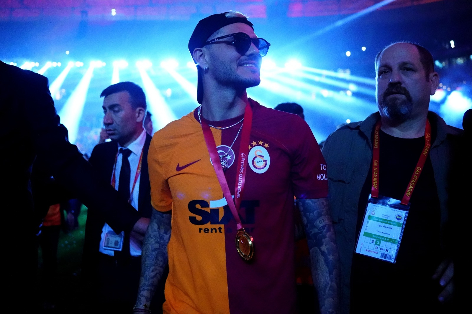 Futbolcular seçtikleri şarkılarla sahneye çıktı. Arjantinli futbolcu Mauro Icardi, kendisiyle özdeşleşen 'Aşkın Olayım' şarkısı ile alana giriş yaptı.