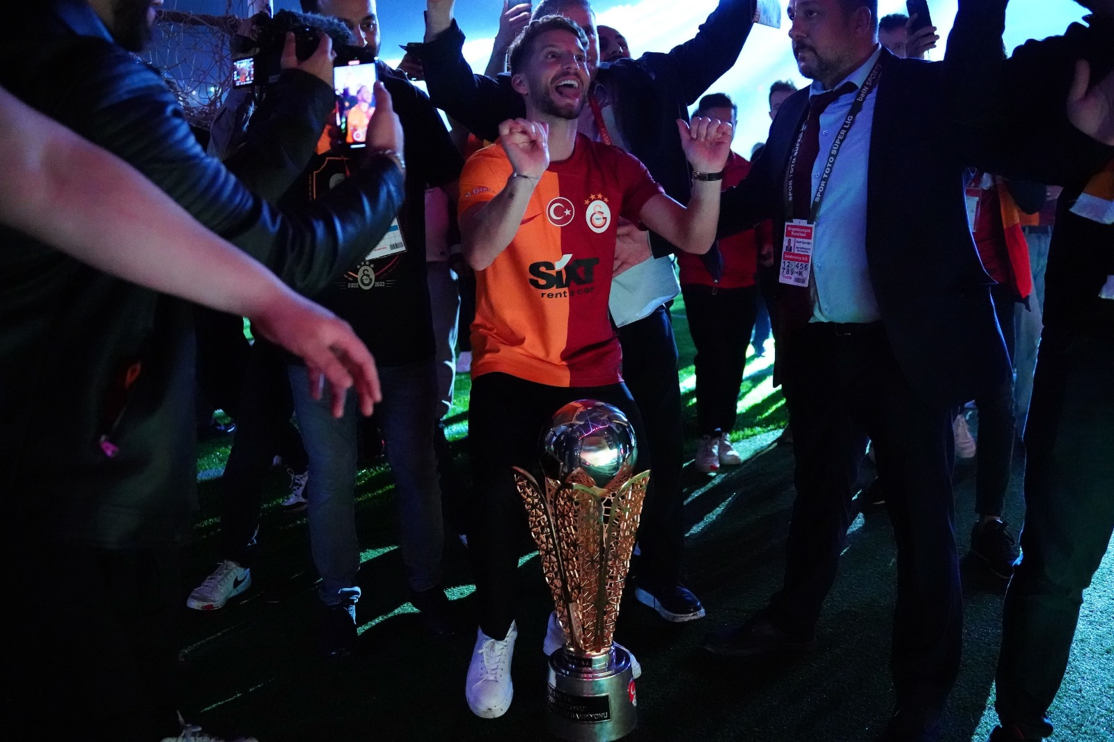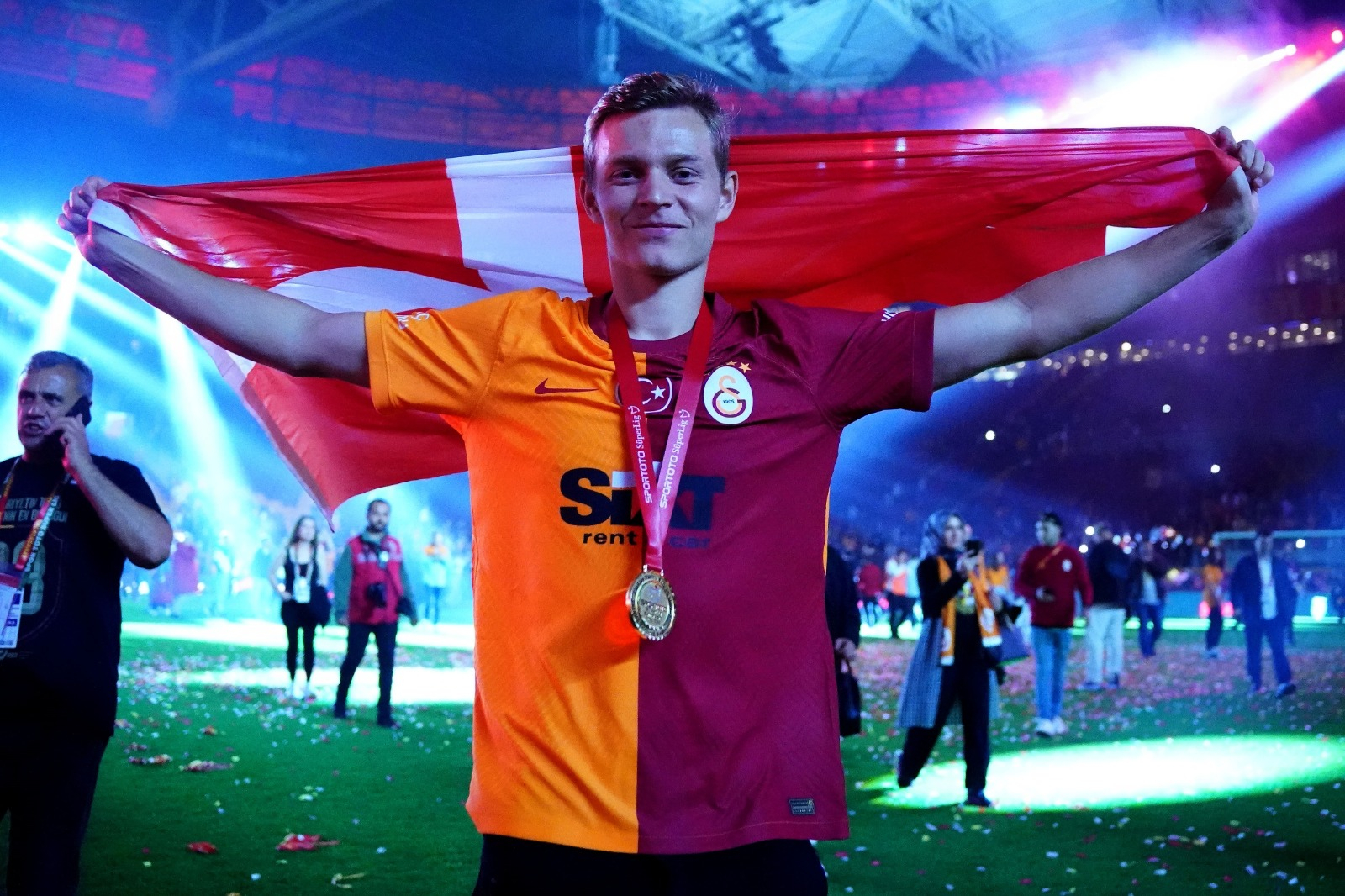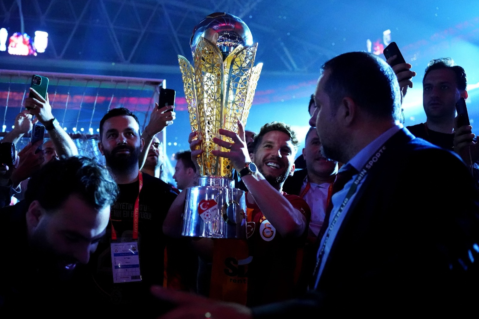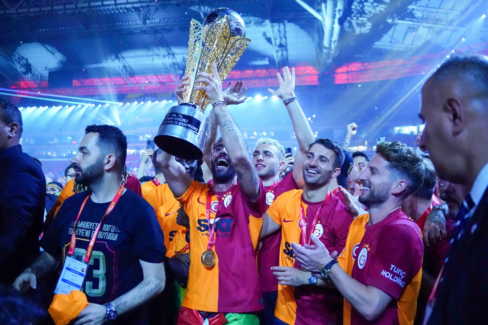 Spor Toto Süper Lig şampiyonu Galatasaray, Nef Stadyumu’nda düzenlenen törenle kupasını aldı.