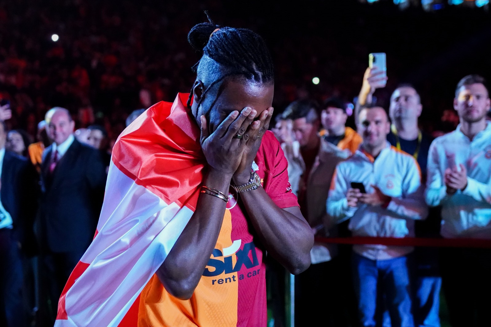 Kahramanmaraş merkezli depremlerin ardından Hatayspor'un ligden çekilmesiyle Galatasaray'a transfer olan Kanadalı futbolcu Sam Adekugbe, duygusal anlar yaşadı ve gözyaşları içinde seremoniye çıktı.