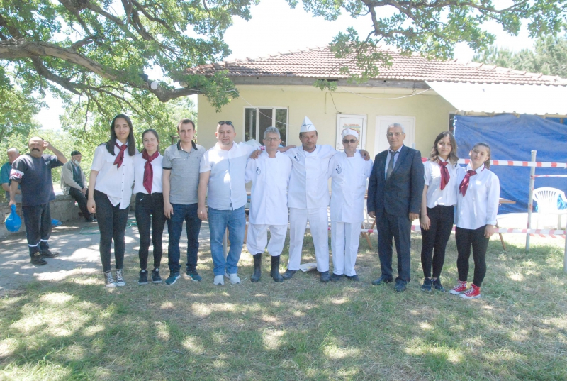 Deneyimli aşçılar davetlilere ikram edilecek Etli Pilav ve İrmik helvasını itina ile pişirip ikramda bulundular