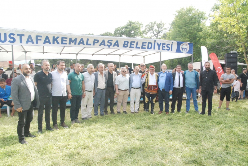 Bursa Mustafakemalpaşalılar Derneği Korona'dan kaybettiğimiz Ağa İrfan Çakmak ile Cazgır Pele Mehmet'in afişleriyle güreşlere katıldı