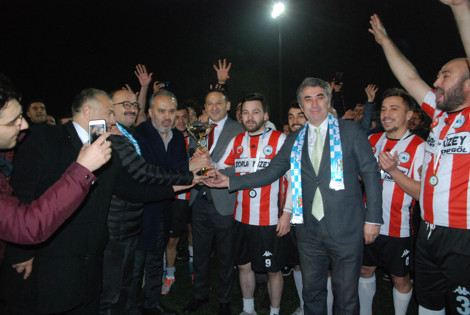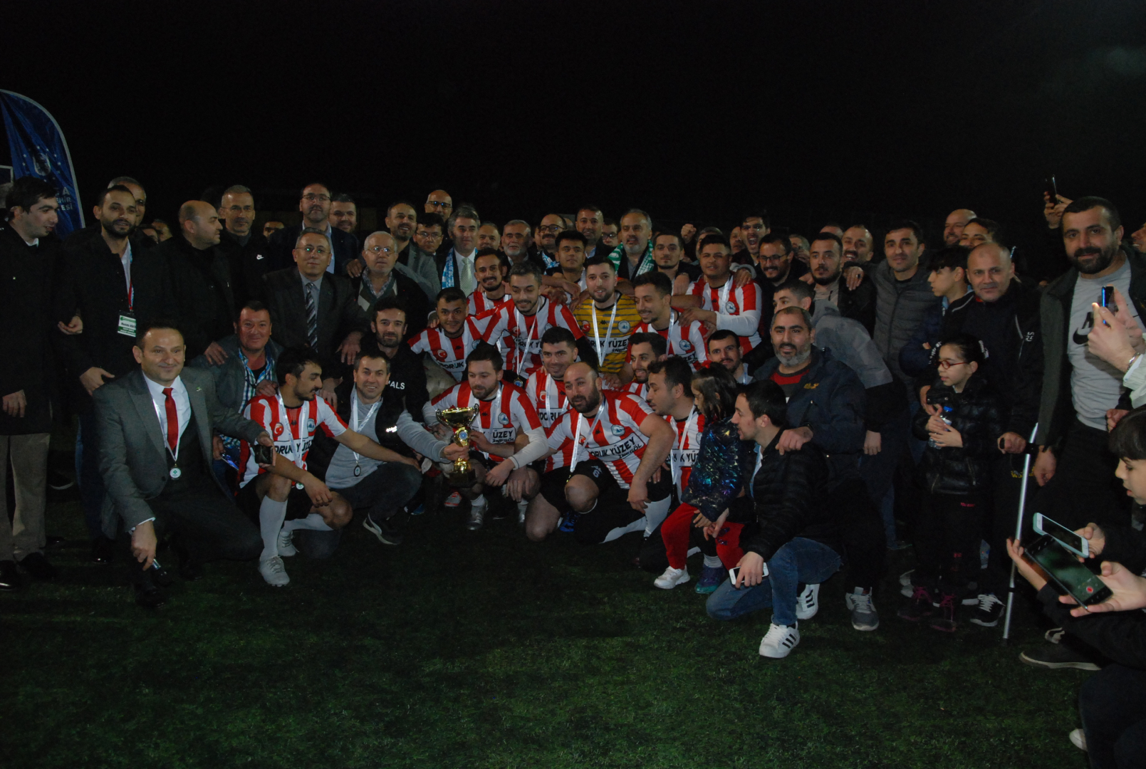 Final maçını oynayan takım futbolcuları ve protokol anı fotoğrafında bir araya geldi.