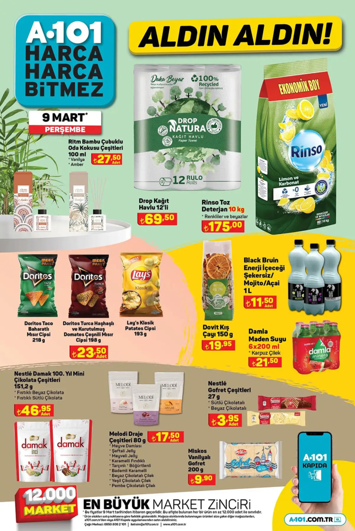 A101 9 Mart 2023 temel tüketim ürünü odaklı fırsat kataloğu yayınlandı. A101 Aktüel Hafta Sonu kataloğunun yeni sayısı da olan bu kampanya kataloğunda indirimler sıralandı.A101 Aktüel Hafta Sonu kataloglarında ev ekonomisine katkı sağlayacak özel fiyatlar ve kaliteli ürünler bir arada bulunuyor. Temel tüketim ürünleri, efsane fiyatlara sahip ürünler ve bakiye kazandıran özel kampanyalarla 9 Mart A101 kataloğu çok konuşulacak. İşte A101 Hafta Sonu yeni indirim broşürleri…