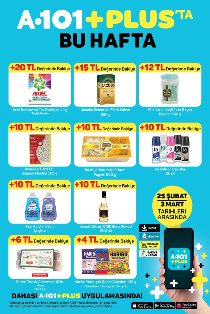 A101 25 Şubat 2023 temel tüketim ürünü odaklı fırsat kataloğu yayınlandı. A101 Aktüel Hafta Sonu kataloğunun yeni sayısı da olan bu kampanya kataloğunda indirimler sıralandı.A101 Aktüel Hafta Sonu kataloglarında ev ekonomisine katkı sağlayacak özel fiyatlar ve kaliteli ürünler bir arada bulunuyor. Temel tüketim ürünleri, efsane fiyatlara sahip ürünler ve bakiye kazandıran özel kampanyalarla 25 Şubat A101 kataloğu çok konuşulacak. İşte A101 Hafta Sonu yeni indirim broşürleri…