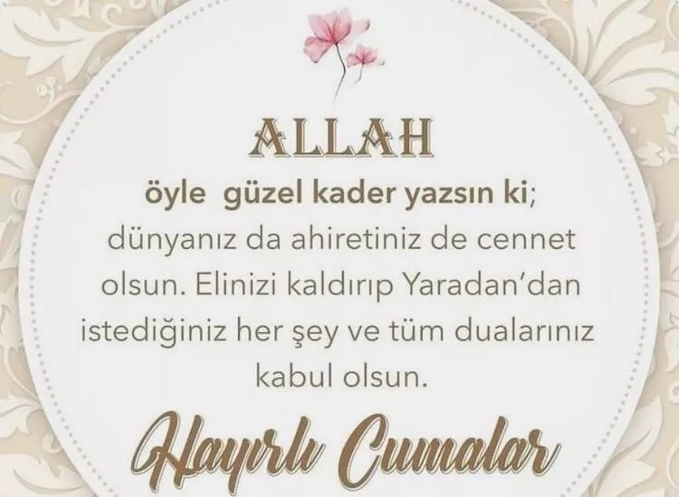 Allah'ım! Senden bu günün ve yarının bildiğim ve bilmediğim ne kadar hayır varsa hepsinden isterim. Senden cenneti ve cennete yaklaştıracak söz ve amelleri isterim. Cumanız mübarek olsun.