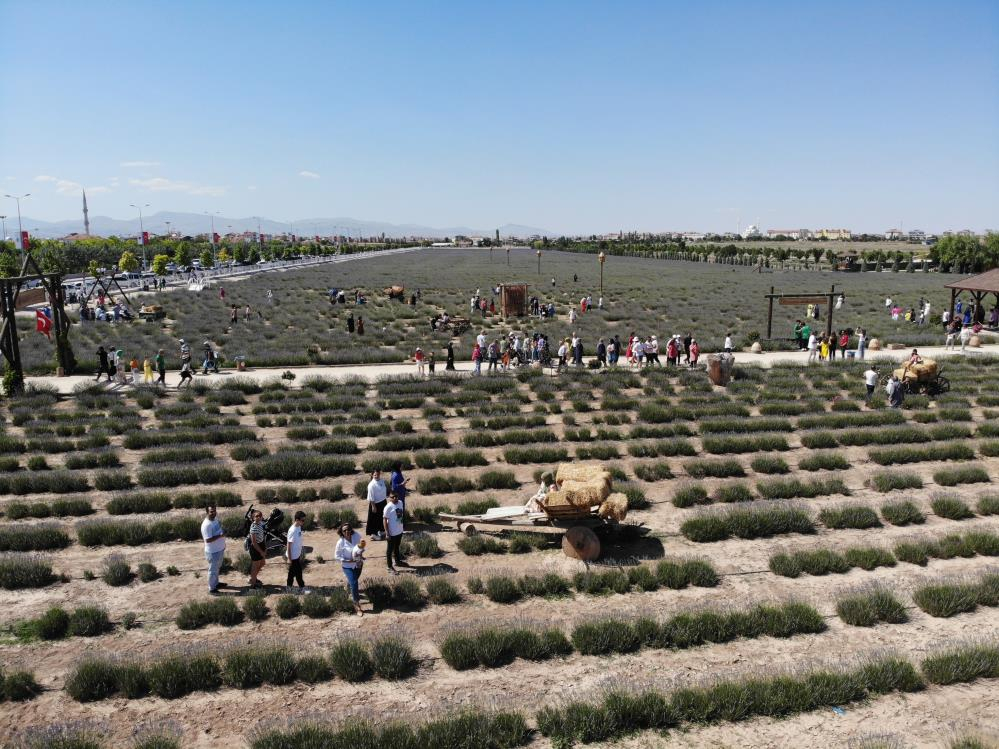 Konya’nın Karatay Belediyesi tarafından kente kazandırılan Karatay Lavanta Bahçesi, ziyaretçi akınına uğruyor.