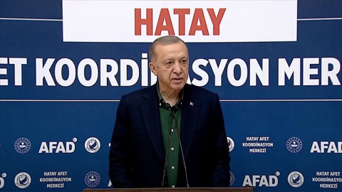 Cumhurbaşkanı Recep Tayyip Erdoğan beraberindeki MHP Lideri Devlet Bahçeli ve bakanlar Hatay İl Afet ve Acil Durum Müdürlüğü’ne geçti. Erdoğan, burada kanaat önderleri ve muhtarlarla toplantı yaptı.