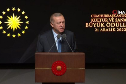 Cumhurbaşkanı Recep Tayyip Erdoğan, 2022 yılı Cumhurbaşkanlığı Kültür ve Sanat Büyük Ödülleri Töreni'nde konuştu. Erdoğan, "Bizim medeniyetimiz bir aşk medeniyetidir. Üzerinde yaşadığımız coğrafya şairleri sultan, sultanları şair kılan, kudretin kelamdan ve kalemden neşet ettiği mümbit topraklardır" dedi.