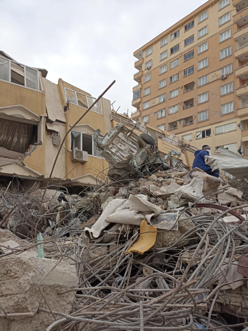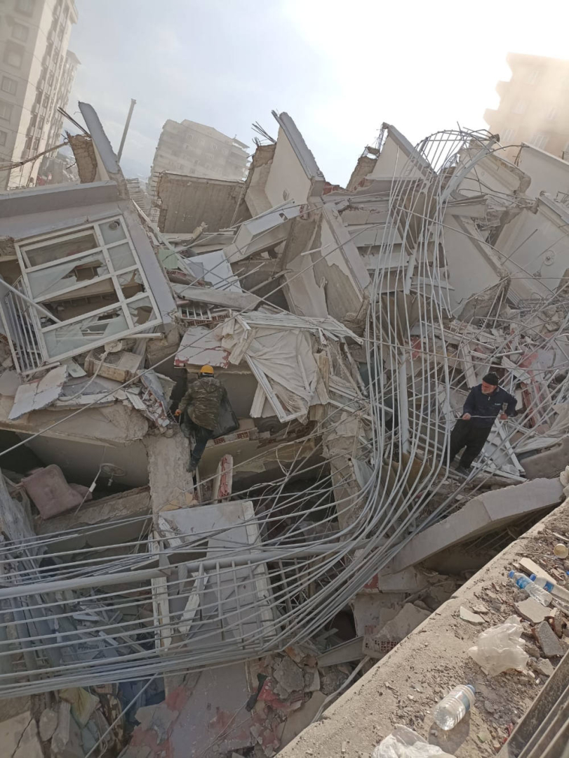 Apartmana vardığımda gözümün alabildiği her yer sanki bir bilgisayar oyunundan çıkmışçasına bildiğim dünyadan uzaktı. Her yerde Türkiye’nin ve dünyanın dört bir yanından gelen arama kurtarma ekipleri, sağlık ekipleri, STK’lar sanki hızlandırılmış bir videoda oynuyormuşçasına koşturuyorlardı. Çadırımı kurduğum ilk andan itibaren apartmanda enkaz altında yakınlarını bekleyen çoğu aileyle tanıştım. Çocuklarını, eşlerini, torunlarını bekleyen insanlar, enkazların arasında neler olduğunu anlamaya çalışan sokak hayvanları, alın teriyle biriktirerek alınmış ama hurdaya dönmüş onlarca araba ve bolca demir… Sevdiğini söyleme şansı olmayan bir adamın pişmanlık dolu gözyaşlarıyla ilk anlardan tanıştım. Kokuyu tasvir etmemin hiçbir yolu olmadığı için yalnızca bendeki etkisini aktarabilirim sizlere. Ömrümün sonuna kadar o ekşi koku; acının, yıkılan hayallerin, sabaha varmamış tüm düşüncelerin temsili olarak benim üzerimde pahalı bir parfüm gibi kalacak.