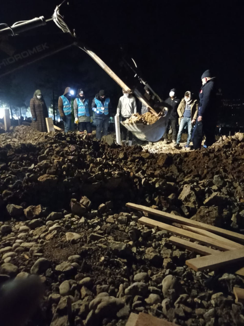 O ana kadar farklı illerde 20’ye yakın arkadaşımı kaybetmiştim, Osman’ın ağabeyini de maalesef hayatını kaybetmiş olarak çıkarabilmiştik ancak Osman’dan ve annesi Leyla Hanım’dan hala haber yoktu. Bu şekilde geçen 10 günden sonra ilk defa Afet Koordinasyon Merkezi’nde duş alabildim. Ancak o zaman dizlerimdeki demir kesiklerini, saçlarıma oturmuş toz ve parçaları fark edebilmiştim. Hemen arkasından ise telefonum yeniden o bilindik acı ses tonuyla çaldı. Osman ve annesinin de maalesef cansız bedenlerine ulaşmıştık. Ben yalnızca bir arkadaştım ama depremzede ailelerin, günler sonra en azından bir mezara sahip olan yakınlarına karşı duydukları rahatlamanın verdiği utancı sizlere anlatabilmelerini isterdim. Günler önce enkazda olduğu için dayanılmaz bir acı hissettiğimiz insanların, ‘en azından mezarı olması’na rahatlamak kadar çaresiz bir durum olabileceğini düşünmüyorum. Deprem durumunda cenazenin su ile yıkanmaması, Maraş’ın en büyük mesire alanlarından birinin ucu bucağı olmayan bir mezarlığa dönüşmesi ve küreklerle değil de kepçe yardımıyla toprak atmak gibi bazı detayların da şaşkınlığıyla Osman ve annesini de şükür dolu bir tesadüf ile yan yana defnettik.