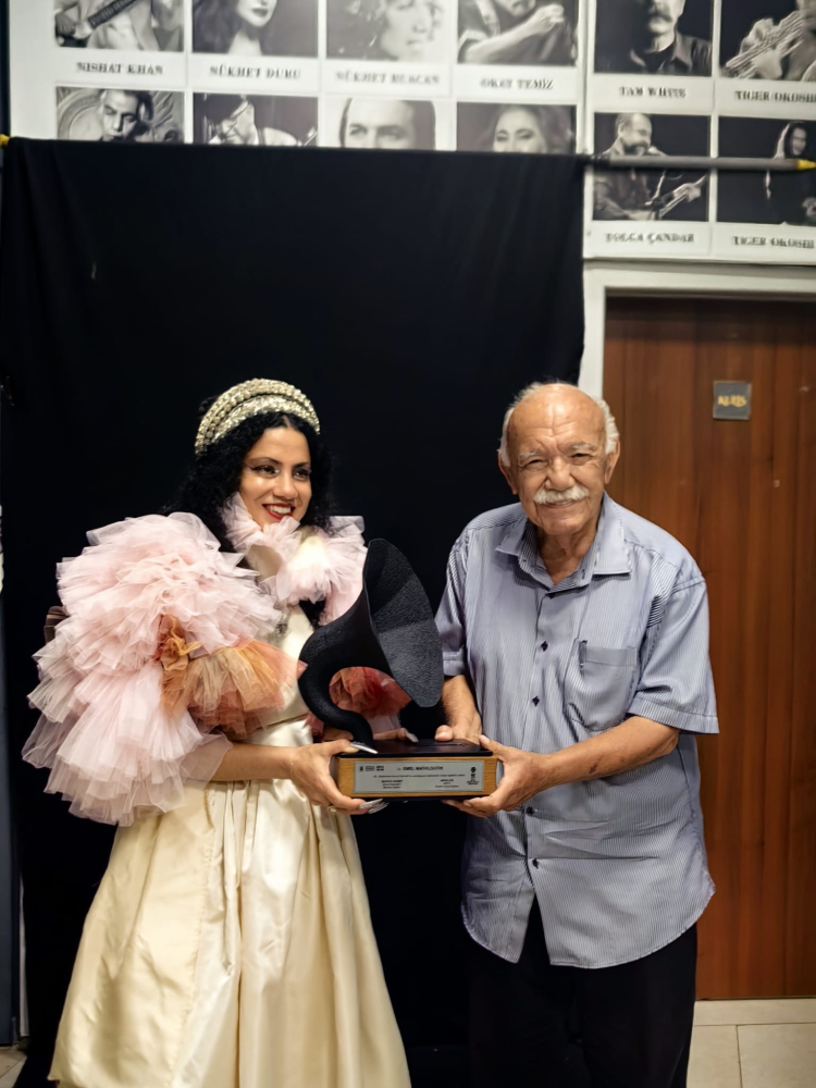 Bursa Büyükşehir Belediyesi eski başkanlarından Erdem Saker, sanatçıya bu güzel gece için teşekkür ederek festival plaketini sundu.