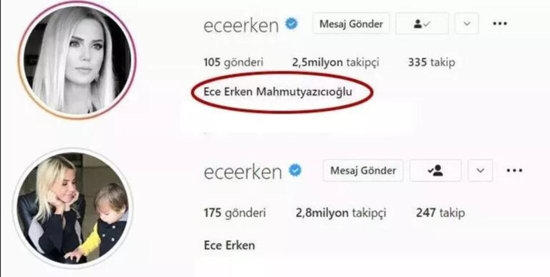 Zor günler yaşayan ve eşine olan özlemini her fırsatta dile getiren Ece Erken'den yeni bir hamle geldi. Ünlü sunucu sosyal medya hesaplarından 'Mahmutyazıcıoğlu' soyadını kaldırdı. Bir takipçisi Ece Erken'e 'Eşinizin soyadını neden sildiniz?' diye sordu. Erken ise 'Yaşananlardan sonra bazı akrabalarıyla aynı soyadını taşımamak için. Her gün daha daiğrenç şeyler duyuyorum' yanıtını verdi.