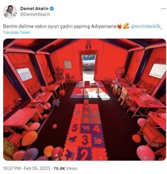 Evrim Keklik Adıyaman'da depremzede çocuklar için seferber oldu ve oyun çadırı projesini hayata geçirdi.