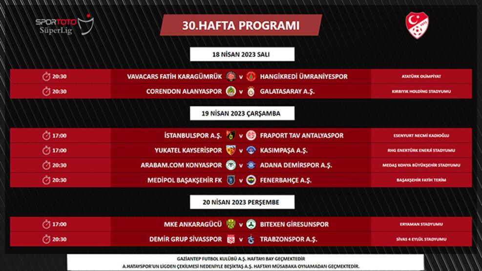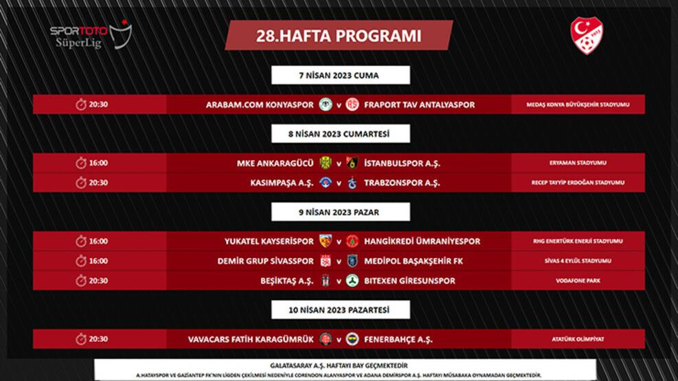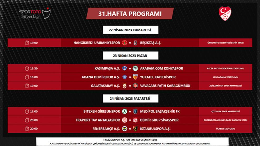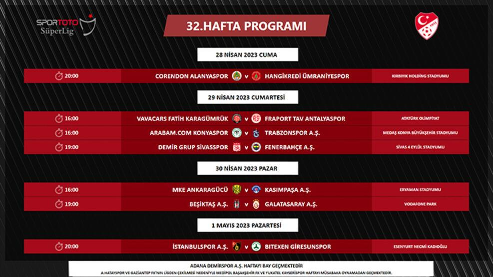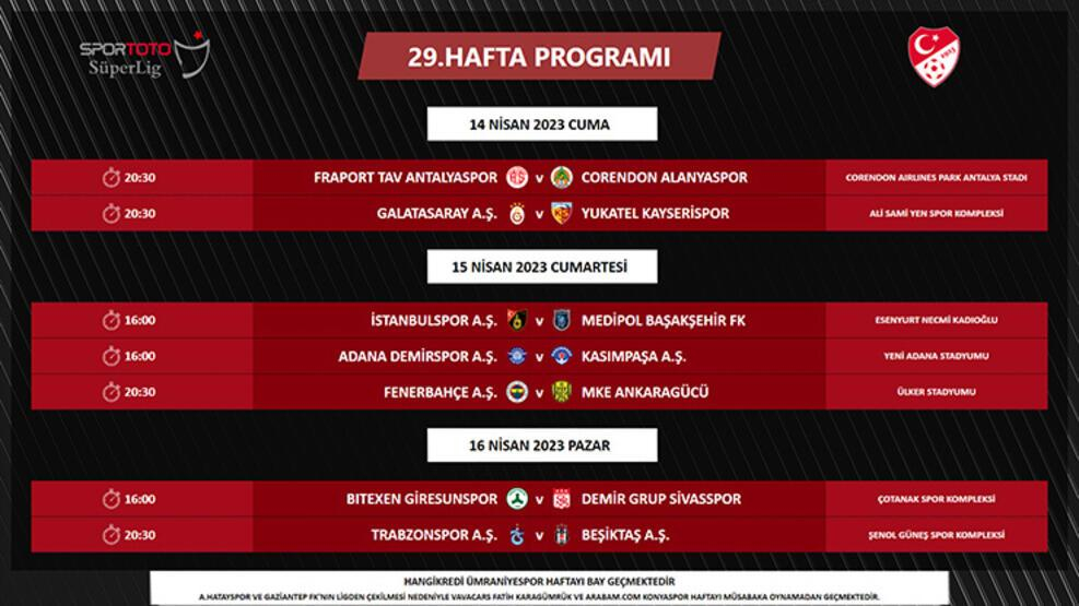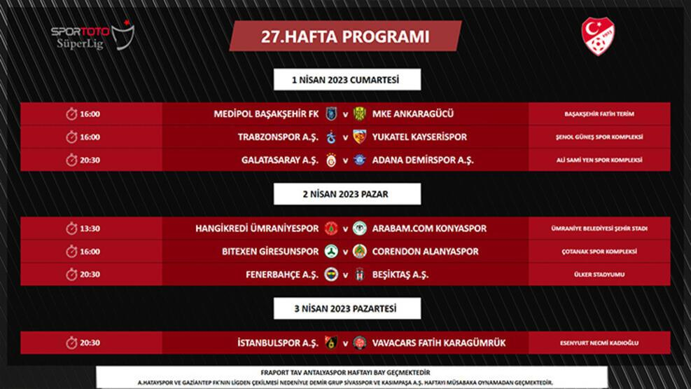Spor Toto Süper Lig'de 27, 28, 29 30, 31, 32 ve 33. hafta maç programı belli oldu. TFF'nin açıkladığı fikstüre göre derbi tarihleri de netleşti.