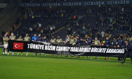 Fenerbahçeli futbolcular, Konyaspor maçının ardından orta sahada toplanarak "Türkiye bizim canımız, yaralarımızı birlikte saracağız" yazılı pankart açtı.