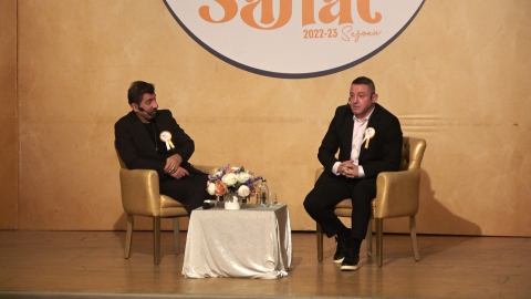 Nihat Kahveci ve Hakan Bilgin’e söyleşinin ardından Yalova Belediye Başkan Yardımcısı Ahmet Sarıduman tarafından plaket ve çiçek takdim edildi.