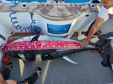 Yaz aylarının gelmesi ve havanın durgunlaşmasıyla birlikte Akdeniz, balıkçıların akınına uğramaya başladı. Hatay’ın Arsuz ilçesinden tekne ile Akdeniz’e açılan hobi amaçlı balık tutan 4 kafadar; 154 kilogram ağırlığında, 2 metrenin üzerinde boya sahip olan orkinosu 1 saatlik mücadeleyle yakalamayı başardı. İskenderun körfezinde yaşanan adrenalin dolu dakikalar, balıkçılar tarafından anbean kaydedildi. Balığın yakalanması esnasında oltanın kırılmasına rağmen mücadeleden vazgeçmeyen balıkçılar, 1 saatlik mücadeleyle balığı tekneye almayı başardılar. Balıkçıların devasa orkinosun boyutunun büyüklüğünü göstermek için balıkla boy ölçüşmeleriyse gülümsetti.